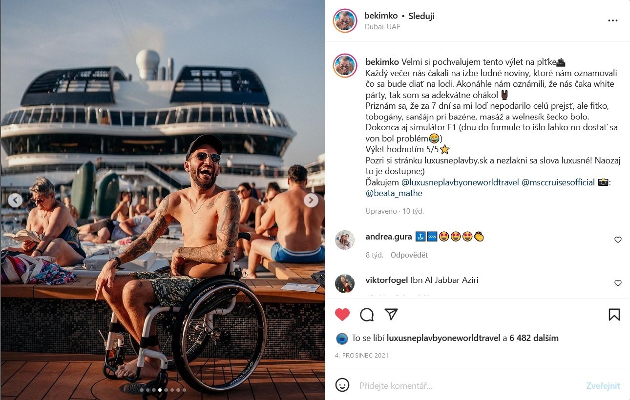 Na jeseň 2021 Naša cestovná kancelária ONEWORLD Travel s.r.o. sponzorovala 7 nočnú plavbu influencera a vozíčkára Bekima na lodi MSC Virtuosa z Dubaja. Nielen, že celú plavbu vtipne glosoval, ale podelil sa aj o pekné fotky na sociálnych sieťach. Najviac fascinujúca bola jeho jazda na tobogáne!