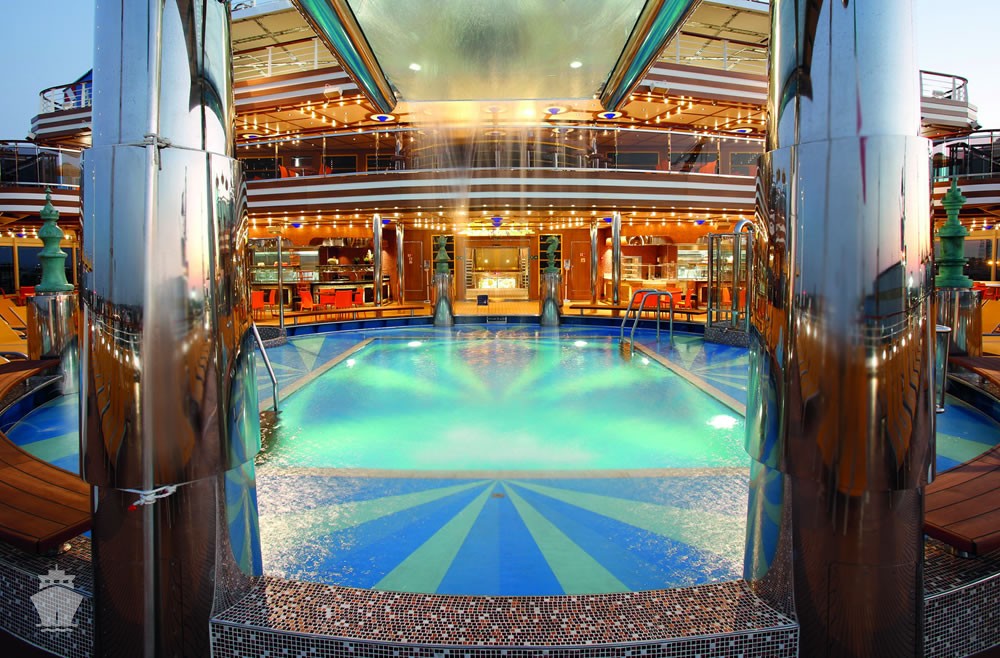 » 2 otvorené bazény na hornej palube + 1 bazén s posuvnou sklenenou strechou + bazén pre deti