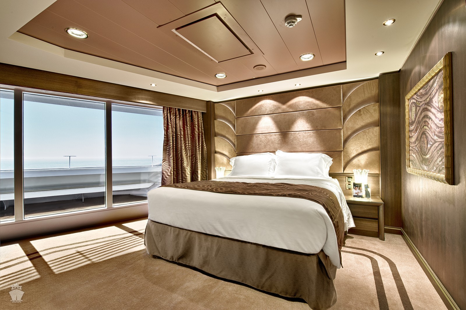 Suite s balkónom/panoramatickým oknom: 21-47m², kajuta s manželskou posteľou (na požiadanie 2 oddelené postele) a rozkladacia pohovka. Klimatizácia, kúpeľňa s vaňou, toaletný stolík, priestranná skriňa, interaktívna TV, telefón, minibar, sejf, sušič na vlasy. Balkón so stolíkom a stoličkami/panoramatické okno. Internetové pripojenie (za poplatok).