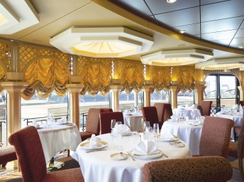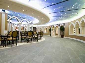 Le Muse - exkluzívna reštaurácia s kapacitou 136 hostí (15. paluba) otvorená pre raňajky, obedy a večere exkluzívne pre hostí Yacht Clubu.