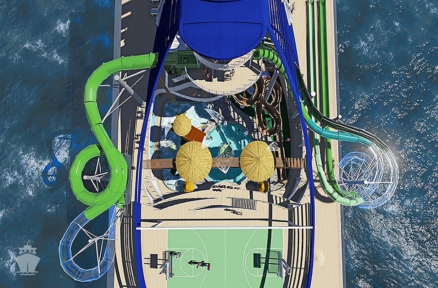 "360° Waterfront boardwalk" – promenáda okolo celej lode, ktorej súčasťou je prechádzka cez priehľadnú podlahu pre ešte väčší zážitok z plavby.