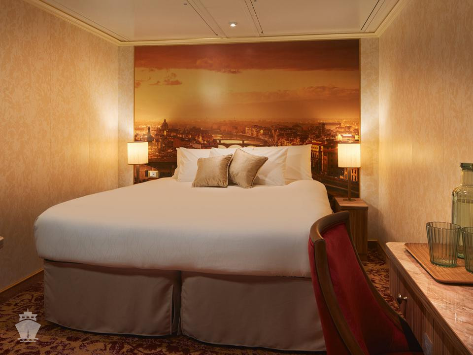 Útulná, klasická kajuta zdobená talianskym nádychom… plus benefit ako je exkluzívny prístup do vonkajšej oblasti Terrazza Carnevale.