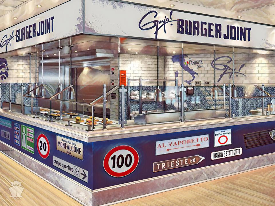 Átrium inšpirované Benátkami - Piazza San Marco, trojchodové reštaurácie Marco Polo a Canal Grande, La Strada Grill™ , či mexicko-talianske špeciality Tomodoro™ a Guy's Burger Joint (nové hamburgery s talianskou príchuťou).