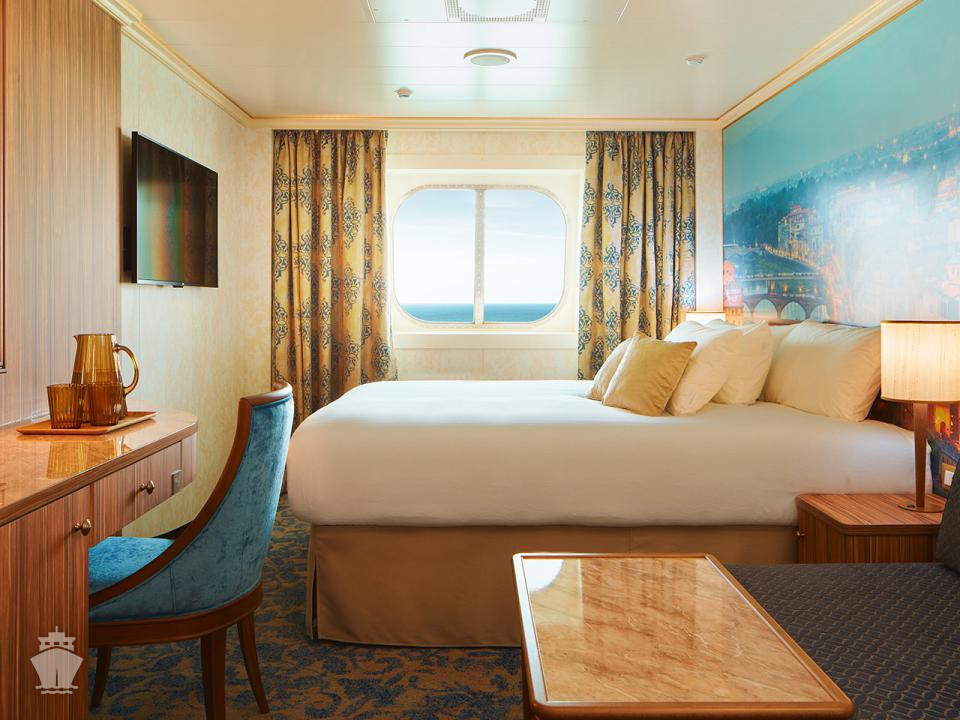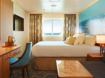 Kajuty Deluxe s výhľadom na oceán sú skvelou voľbou pre rodiny a neprekáža im obmedzený výhľad z okna. Samozrejmosťou je plne vybavená kúpeľňa a samostatná toaleta.