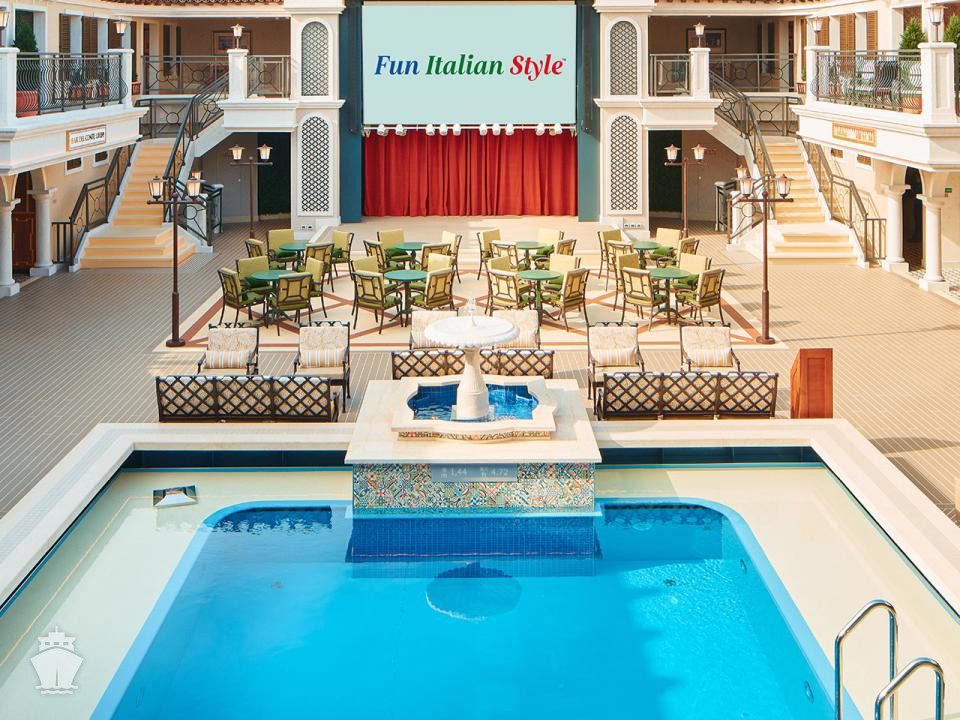 Príjemné posedenie v baroch, z ktorých sa každý špecializuje na niečo iné: komplexné a sofistikované koktaily v Amari™, "bublinky" (plus občerstvenie a káva) vo Frizzante™, mrazené "všetko" v Rococó™ a kvalitné talianske vína v Carnevale Bar & Lounge™.