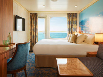 Kajuty sú navrhnuté pre maximálny komfort, balkón je ešte širší ako štandardný balkón, vďaka čomu sa získa ďalší vonkajší priestor.
