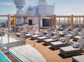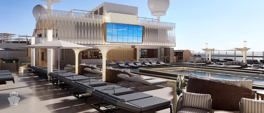 Priestranná terasa pri hlavnom bazéne sponúka množstvo miest na sedenie, niekoľko víriviek a detský aquapark. Pre tých, ktorí preferujú pokoj a relax, je k dispozícii priestor Infinity Beach s dvomi presklennými bazénmi, s pohodlným barovým sedením či plyšovými lehátkami.