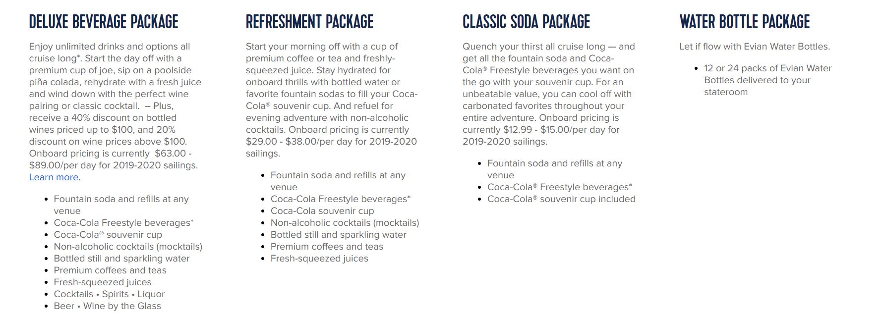 Všetky doplnkové služby vrátane nápojových balíčkov si cestujúci plánuje pred plavbou na stránke spoločnosti Royal Caribbean Cruise Planner po osobnej registrácii a to čo najskôr po potvrdení rezervácie.