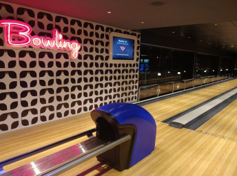 - Dvojúrovňová promenáda s reštauráciami, barmi a duty-free obchodmi, zastrešená 480 m² LED “digitálnou oblohou” s vizuálnymi show