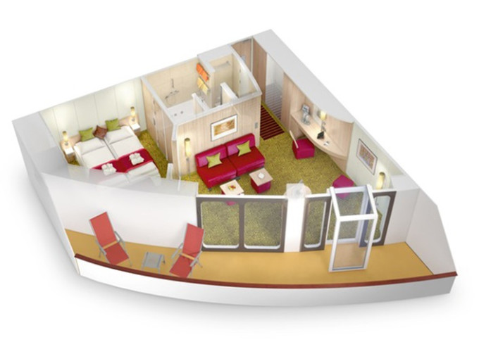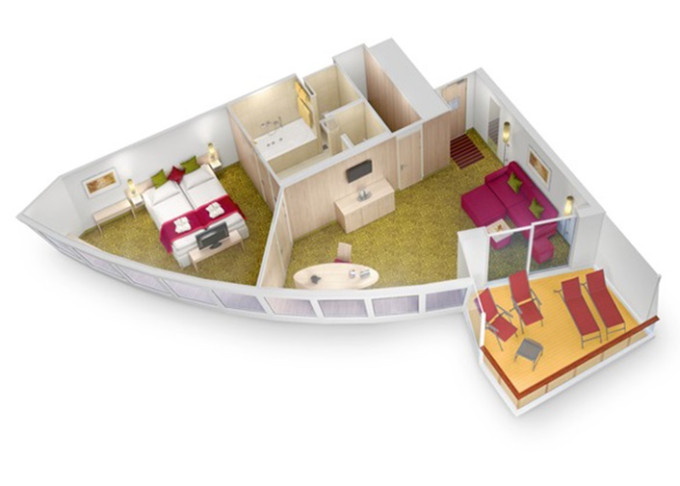 SA - Suite Deluxe PREMIUM od 56 m² (vrátane terasy od 12 m²). 6,8. paluba. Max 5 osôb. Cenový model Premium + výhody Suite. | 3 120 € 1 560 € za osobu |
