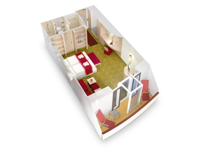 BA - Kajuta s balkónom PREMIUM 14.5-20 m² + balkón 3 m². Max 3 osoby. 6. až 9. paluba. Cenový model Premium. | 1 570 € 785 € za osobu | ||