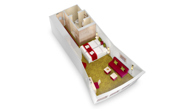 SD - Junior Suite PREMIUM od 24 m² + balkón 10 m². 7,8. paluba. Max 4 osoby. Cenový model Premium + výhody Junior Suite. | 2 420 € 1 210 € za osobu |