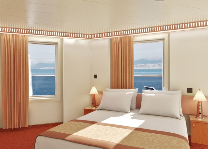 6A - Vonkajšia kajuta 20 m². Neotvárateľné okno. 1. paluba vpredu, vzadu. | 650 € 325 € za osobu | ||