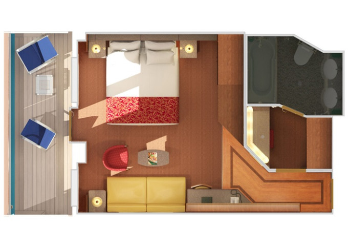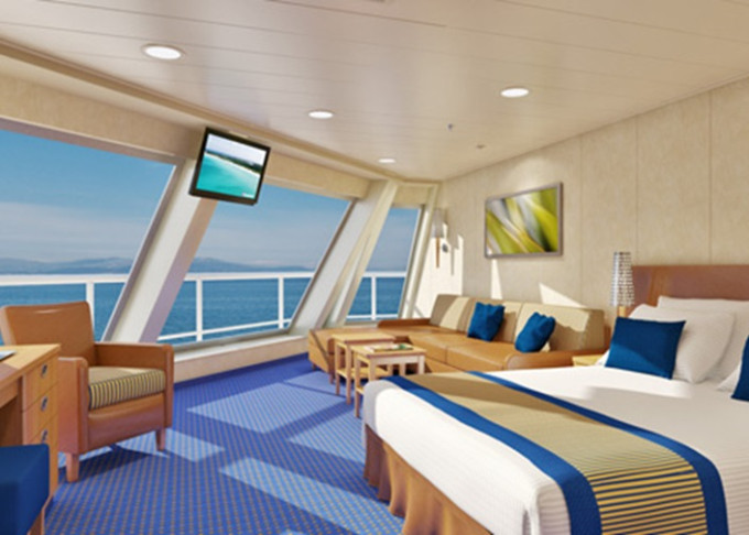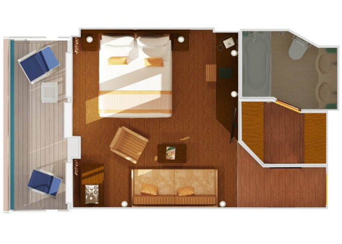 OS - Ocean Suite 25 m² + balkón 6 m². 7. paluba vpredu, stred. Max 4 osoby. Výhody Suite. | 1 090 € 545 € za osobu |