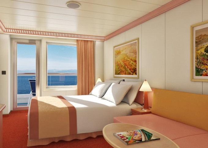 9B - Kajuta s balkónom Premium 17 m² + balkón 7 m². 8. paluba vzadu.Max 2 osoby. | 1 076 € 538 € za osobu |