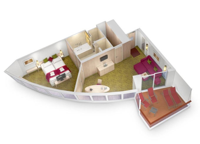 SA - Suite Deluxe PREMIUM od 56 m² / balkón od 12 m². Max 5 osôb. Cenový model Premium + výhody Suite. | 6 660 € 3 330 € za osobu |
