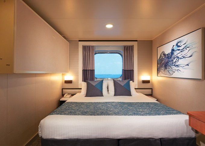 OK - Vonkajšia kajuta / obmedzený výhľad 15-17 m². Neotvárateľné okno s obmedzeným výhľadom. 8. paluba - stred. Max 2-4 osoby. 618 € 309 € za osobu