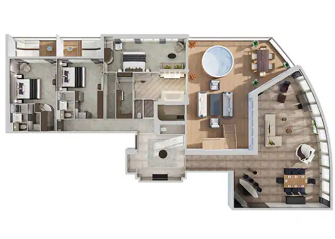 H2 - The Haven Deluxe Owner's Suite 136 m² / balkón 45 m². 18. paluba vpredu. Max 6 osôb. Výhody The Haven. 4 584 € 2 292 € za osobu