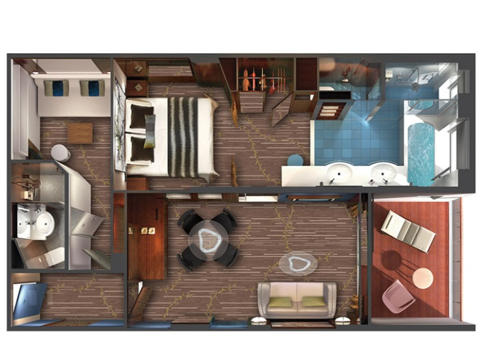 S4 - Deluxe Family Suite 50 m² / balkón 5 m². 11. paluba - vpredu, stred. Max 6 osôb. Výhody Suite. 2 542 € 1 271 € za osobu