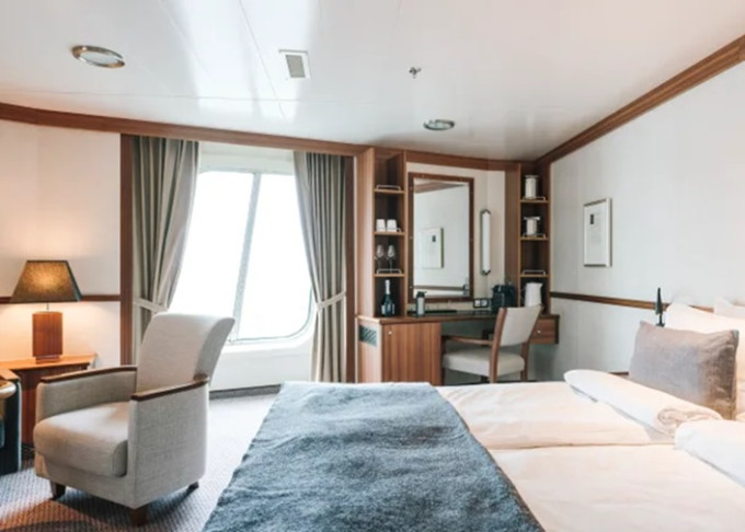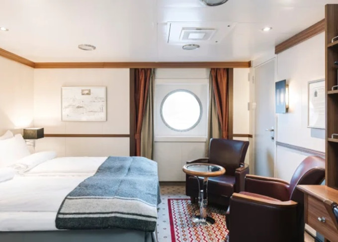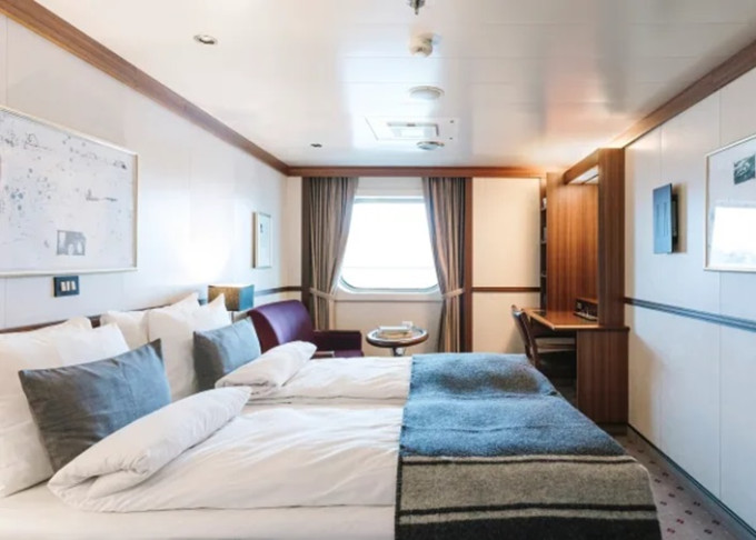 F4 - Vonkajšia kajuta Arctic Superior 22-23 m². Neotvárateľné okno / môže byť obmedzený výhľad.Tv, varná kanvica. Upper paluba. Max 4 osoby. 19 494 € 9 747 € za osobu