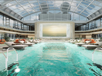 Ocean Residence - Serenity Residence Suita 60 m² + Terasa s vírivkou, sedením, pohovkou a lehátkami 7. paluba: 53 m² / 9. paluba: 66 m². Spálňa s obývacou a jedálenskou časťou, šatník. Koktailová súprava, minibar, kávovar, vodná kanvica, ďalekohľad, sejf, mramorová kúpeľňa s vaňou a sprchou. Taška Technogym Case Kit a Technogym Bench. Fľaša šampanského na privítanie. Služby osobného majordóma. Maximálna kapacita 3 dospelí alebo 2 dospelí + 2 deti pod 18 rokov. | 42 750 € 42 750 € za osobu | ||