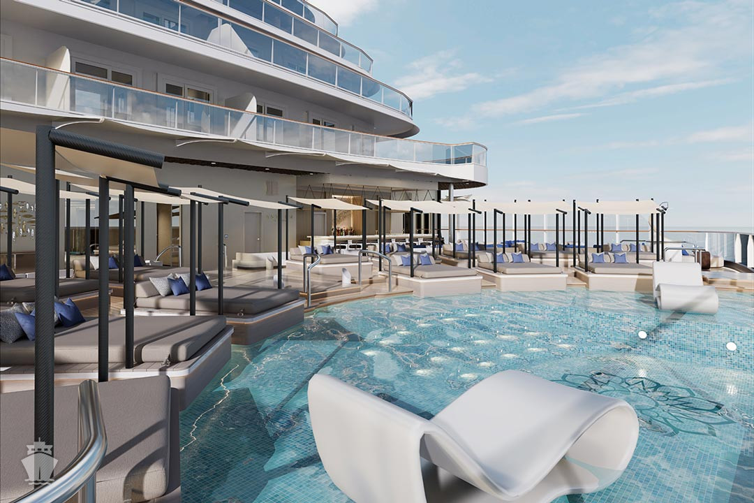 Ocean Residence - Serenity Residence Suita 60 m² + Terasa s vírivkou, sedením, pohovkou a lehátkami 7. paluba: 53 m² / 9. paluba: 66 m². Spálňa s obývacou a jedálenskou časťou, šatník. Koktailová súprava, minibar, kávovar, vodná kanvica, ďalekohľad, sejf, mramorová kúpeľňa s vaňou a sprchou. Taška Technogym Case Kit a Technogym Bench. Fľaša šampanského na privítanie. Služby osobného majordóma. Maximálna kapacita 3 dospelí alebo 2 dospelí + 2 deti pod 18 rokov. | 37 404 € 12 468 € za osobu |
