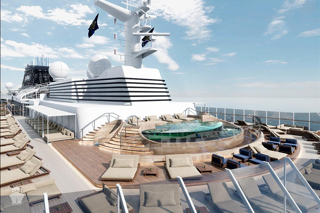 Ocean Penthouse Suita 34 m² + terasa so sedením a pohovkou 9 m² / na 6. palube terasa 14 m². Spálňa s obývacou a jedálenskou časťou, šatník. Minibar, kávovar, vodná kanvica, ďalekohľad, sejf, kúpeľňa so sprchou. Taška Technogym Case Kit. Fľaša šampanského na privítanie. 6, 7, 8, 9. paluba. Maximálna kapacita 3 osoby. | 15 201 € 5 067 € za osobu |