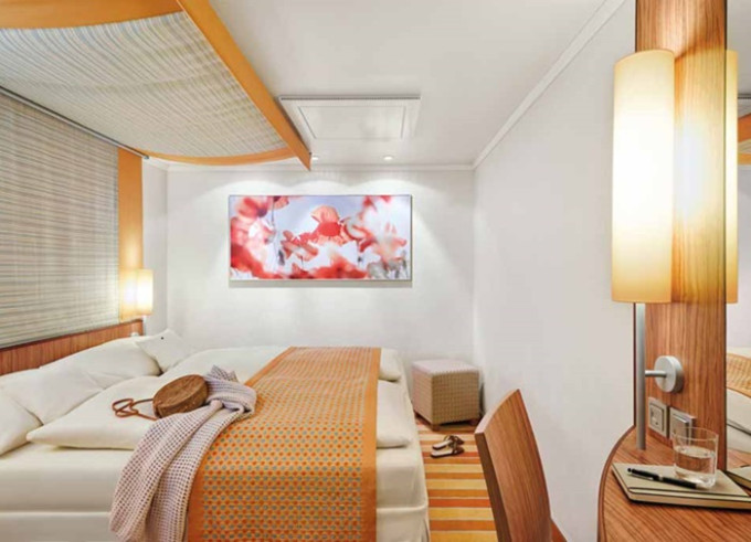 CA - Vonkajšia kajuta PREMIUM / obmedzený výhľad 14-16,5 m². Neotvárateľné okno / obmedzený výhľad. 6. paluba. Max 2 osoby. Cenový model Premium. | 6 810 € 3 405 € za osobu |