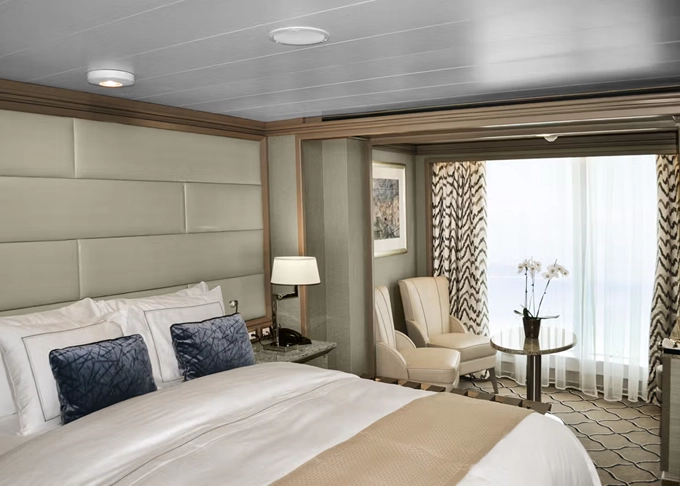 VI - Vista Suite s oknom 32 m². Panoramatické neotvárateľné okno. 4. paluba. Max 2 osoby. 9 125 € 9 125 € za osobu