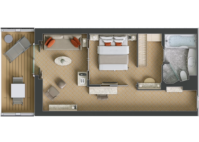 SV - Superior Veranda Suite 30 m² + balkón 6 m². 7,8,9. paluba. Max 3 osoby. 10 625 € 10 625 € za osobu