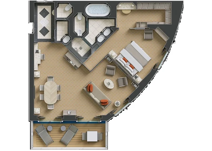 R1 - Royal Suite 1 105 m² (vrátane balkónu). 7. paluba vpredu. Max 3 osoby. 24 200 € 24 200 € za osobu