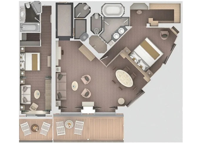 R1 - Royal Suite 1 105 m² (vrátane balkónu). 7. paluba vpredu. Max 3 osoby. 36 300 € 12 100 € za osobu