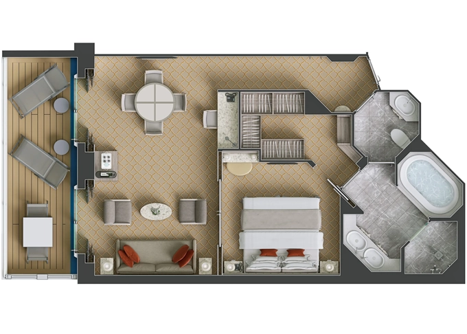 SV - Superior Veranda Suite 30 m² + balkón 6 m². 7,8,9. paluba. Max 3 osoby. 11 850 € 11 850 € za osobu