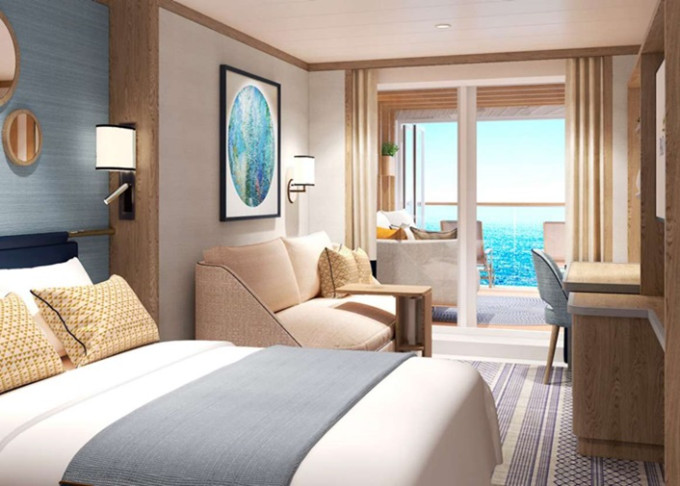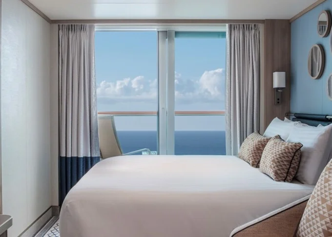 EE - Kajuta s balkónom Deluxe 19 m² + balkón 2 m². 9. až 15. paluba. 3 448 € 1 724 € za osobu