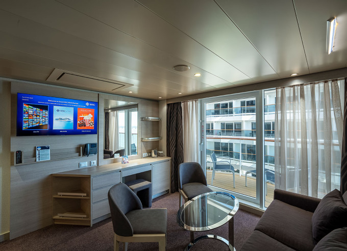 YC1 - Yacht Club Deluxe Suite 25 m² + balkón 5 m². Max 4 osoby. 15-21. paluba. Cenový model MSC Yacht Club. | 8 283 € 2 761 € za osobu |