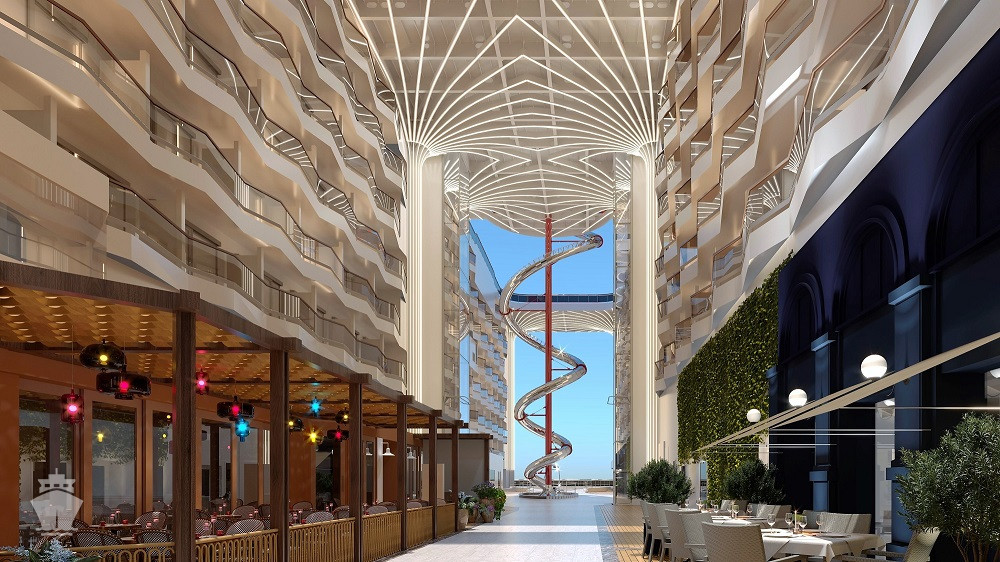 Jedným z kľúčových prvkov lodnej promenády je The Spiral - architektonicky pozoruhodný tobogán, ktorý sa stáča cez neuveriteľných 11 palub - najdlhší suchý tobogan na mori! Elegantné krivky pôsobivého sklzu z nehrdzavejúcej ocele z neho robia skutočné umelecké dielo a je to i zábavný spôsob, ako sa rýchlo dostať z vrcholu lode na promenádu.