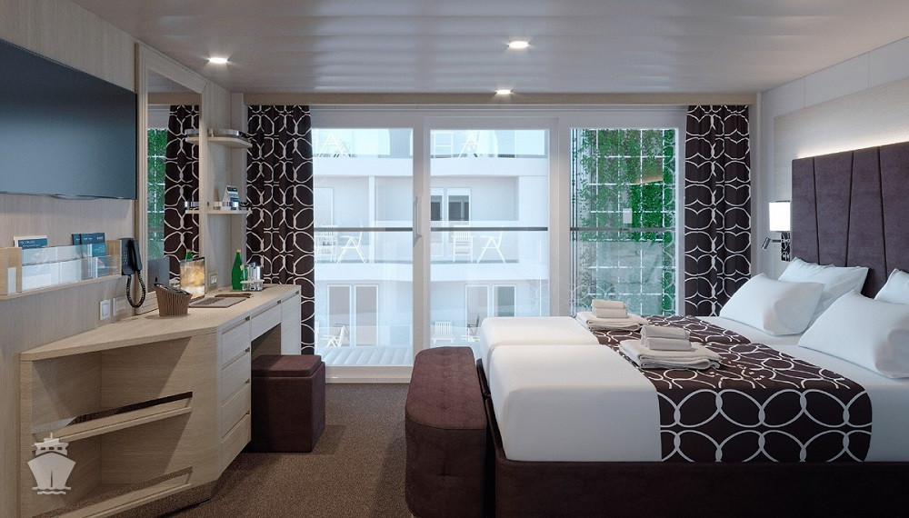 BGA - Kajuta s balkónom Aurea Premium 17 m² + balkón od 13-17 m². 9. paluba. Cenový model Aurea. | 4 638 € 1 546 € za osobu |
