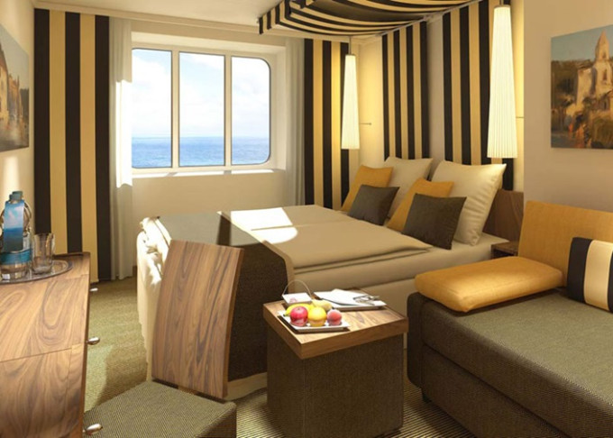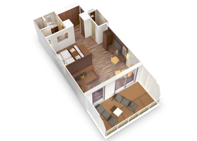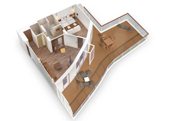 SA - Suite Deluxe PREMIUM 43 m² / 72 m² balkón. 12. paluba. Max 4 osoby. Cenový model Premium + výhody Suite. 6 410 € 3 205 € za osobu