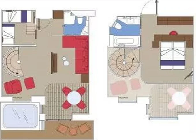 YJD - Yacht Club Duplex Suite s vírivkou 46 m² + balkón 30 m². Vírivka. 2 podlažia, šatník, 2 kúpeľne (1 s vaňou). Max 4 osoby. 16. paluba. Cenový model MSC Yacht Club. | 7 950 € 7 950 € za osobu | ||