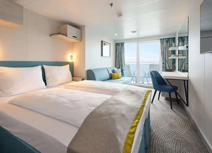 BAUR - Kajuta s balkónom PUR 17 m² + balkón 5-7 m². Max 4 osoby. Cenový model PUR. 2 798 € 1 399 € za osobu