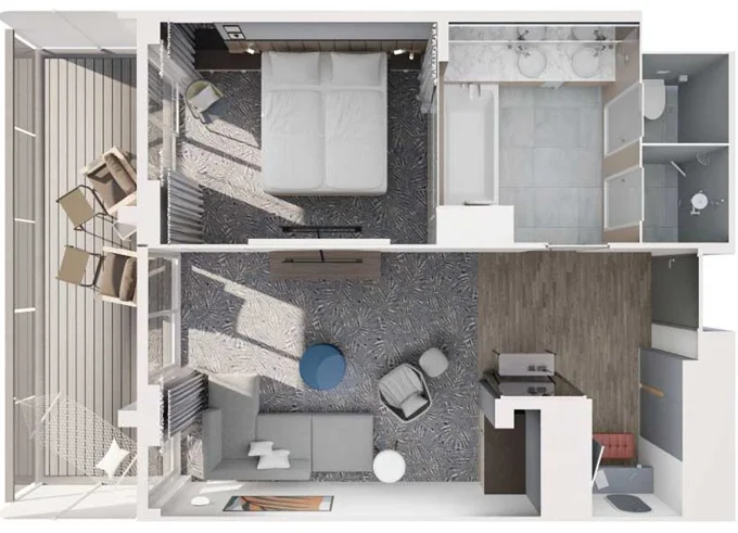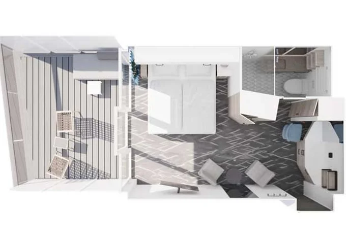 | JBBO - Junior Suite s balkónom B 26 m² + balkón 7 m² so stoličkami a podnožkami. 8-12. paluba. Max 4 osoby. Výhody Junior Suite. | 4 158 € 4 158 € za osobu |