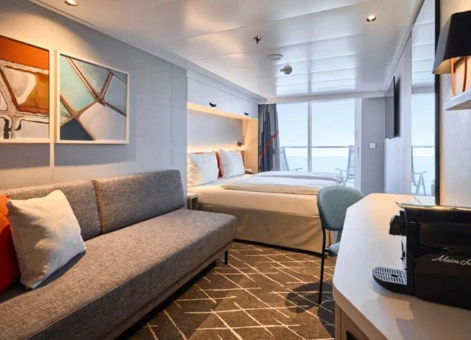 | SUWO - Weitblick Suite 45 m² + balkón 12 m² s hojdacou sieťou. Oddelená spálňa a obývacia časť, šatník. 14. paluba. Max 4 osoby. Výhody Suite. | 7 058 € 7 058 € za osobu |
